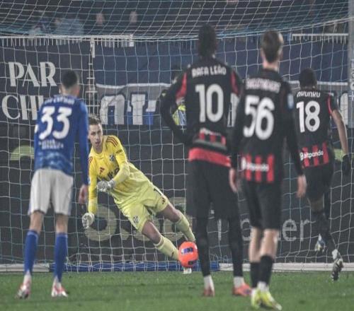 第25分钟,科莫踢出犀利的反击。尼科-帕斯在禁区前沿起脚远射。门将迈尼昂做出极限扑救,化解了险情。第41分钟,达库尼亚门前抢点头球攻门。迈尼昂再次做出神扑。真是不可思议。屡失良机的科莫随后遭到惩罚。拉比奥制造点球机会。恩昆库主罚,稳稳命中。半场结束,AC米兰1-1科莫。