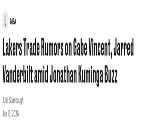 北京时间1月16日,据NBA名记凯文-奥康纳透露,洛杉矶湖人队正考虑在交易截止日前将文森特和范德比尔特打包交易。奥康纳表示,湖人还在兜售他们2032年的首轮签,希望以此换取“两到三个”顺位更低的首轮签。