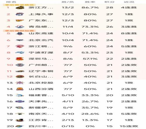 CBA最新积分榜