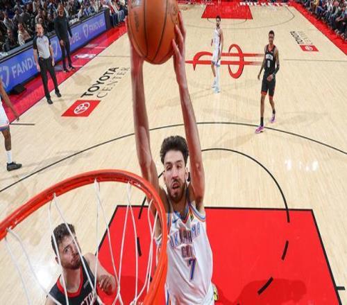 霍姆格伦在对阵火箭的比赛中,包办了雷霆前21分中的11分。整场比赛他效率极高,最终以9投7中的出色命中率,拿下18分9篮板4封盖。