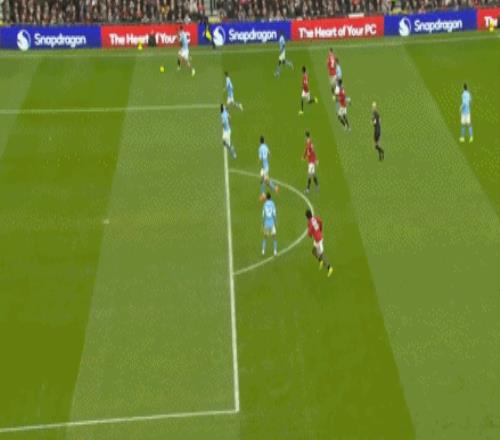 开场仅2分钟,B费的角球精准开到门前,马奎尔近在咫尺的头球不偏不倚直接命中横梁弹出!曼联险些打出闪击战;2分钟后,年轻的阿莱恩在姆伯莫的逼抢下出现回传失误,得亏是多纳鲁马反应迅速立马出击完成解围。第21分钟,曼联中圈断球反击,B费右路跟进不停球转移传中,多古后点包抄小角度低射,多纳鲁马再度化险为夷;第32分钟,罗德里后场回传出现低级失误,B费断球斜塞,可惜姆伯莫慢了半拍被胡桑诺夫解围。