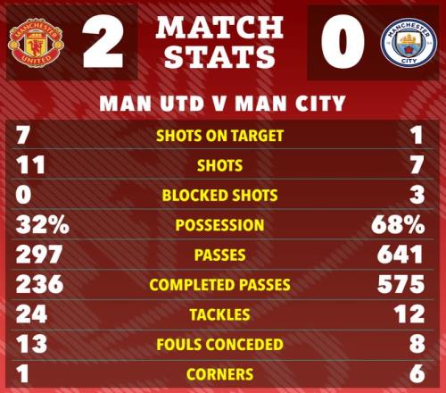 曼联开场就有机会首先破门,B费左路开出角球,马奎尔后点离门一米头球冲顶,皮球却打在横梁上弹出。不过,这为新的红魔奏响良好的开场曲,而随后曼城慢悠悠的倒脚控球打法,则让卡里克看到了取胜的希望。