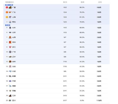 北京时间1月20日,CBA联赛第17轮首个比赛日正式结束,联赛积分榜又有新变化!广东宏远28分大胜四川男篮,取得队史第1000场胜利,同时他们也拿到了本赛季的第30个积分,力压29积分的上海男篮排名积分榜的第2位!浙江广厦稳如泰山,击败单外援的青岛男篮后豪取6连胜,目前仍然是积分榜头名。上海、青岛和山东分列第3至第5,北京男篮排名第6。近来状态不错的山西和深圳排在第7和第8。辽篮则排名第11位,险些跌出季后赛圈。