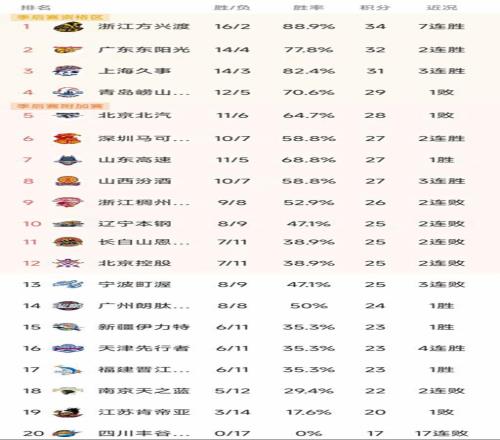 CBA最新积分榜